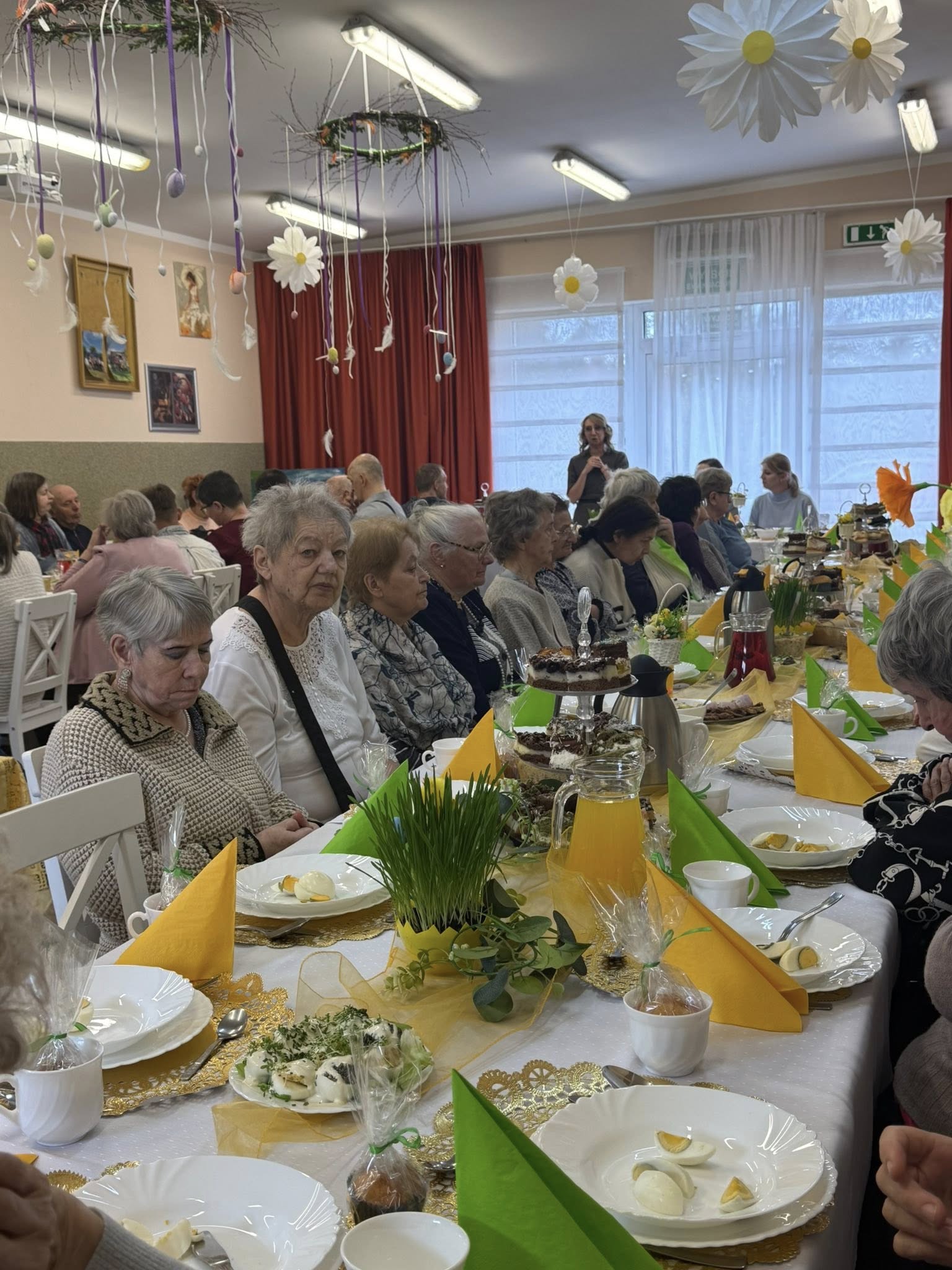 Śniadanie Wielkanocne w naszym ŚDS to zawsze wyjątkowe i pełne ciepła wydarzenie.  To czas, kiedy możemy być razem, dzielić się radością, uśmiechem i dobrym słowem przy wspólnym stole. Nie zabrakło tradycyjnych potraw, pięknych dekoracji i przede wszystkim – wspaniałej atmosfery, którą tworzą nasi uczestnicy i cały zespół.  Takie chwile przypominają, jak ważna jest wspólnota, bliskość i wzajemna życzliwość. Dziękujemy wszystkim za zaangażowanie i serce włożone w przygotowania. To właśnie dzięki Wam ten dzień był tak wyjątkowy!